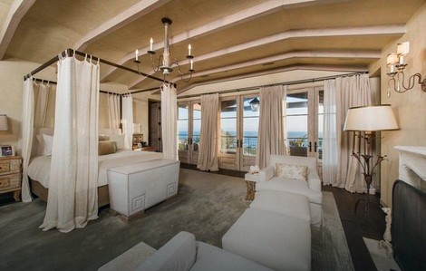 Njena spavaća soba je jedna od najvećih u kući sa ogromnim bračnim krevetom, sofom i kaminom. Takođe nju krase glamurozni lusteri i lampe. I ona je okrečena u krem boji.