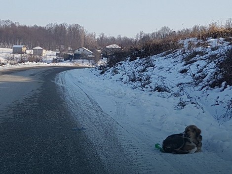 U ovim hladnim zimskim danima, kada temperatura ide i ispod minus 15 stepeni na putu između Tržačke Platnice i Krivaje neko je izbacio i na ulici, hladnokrvno, ostavio svog psa.